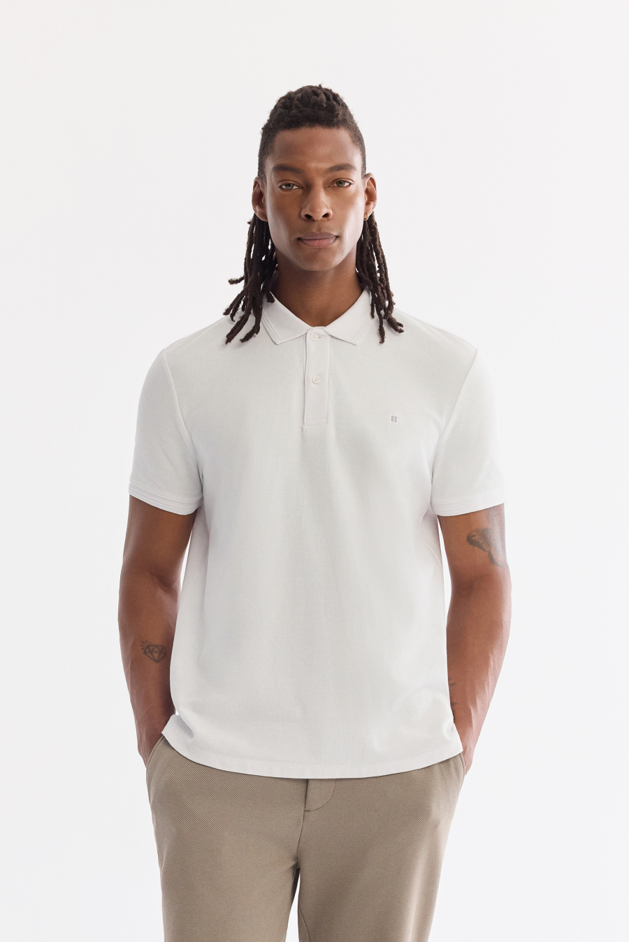 Поло јака, кратки ракави, 100% памук, ткаенина American Piqué, јака без ролување, дише, ве лади, правилен крој, стандарден крој, основна маица со поло јака со 2 копчиња